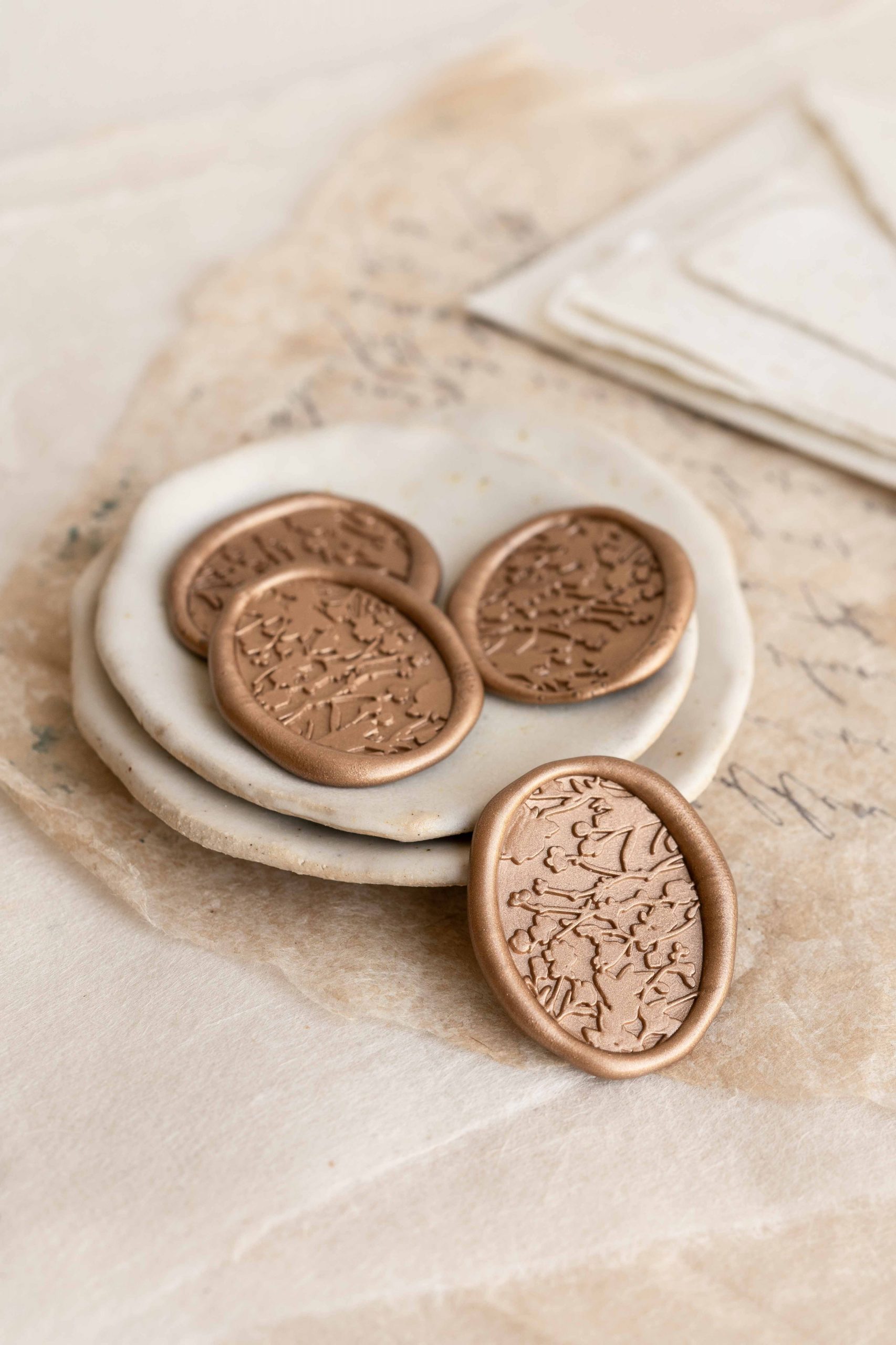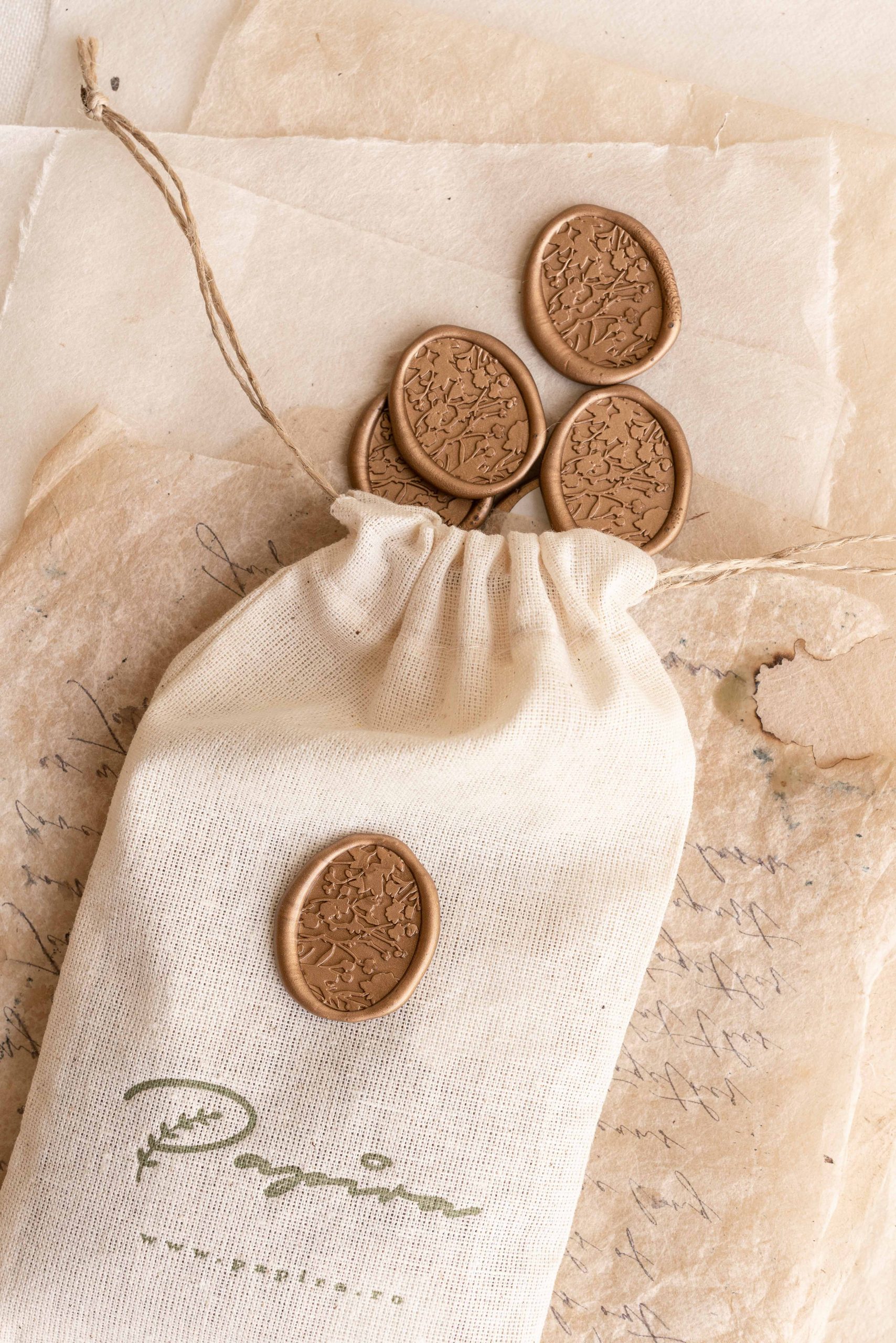 All our self-adhesive wax seals are made entirely by hand, each one completely authentic and unique. Hand stamped in our studio using real sealing wax, which will not break or crack in the mail.  They come packaged in our custom linen branded pouch.