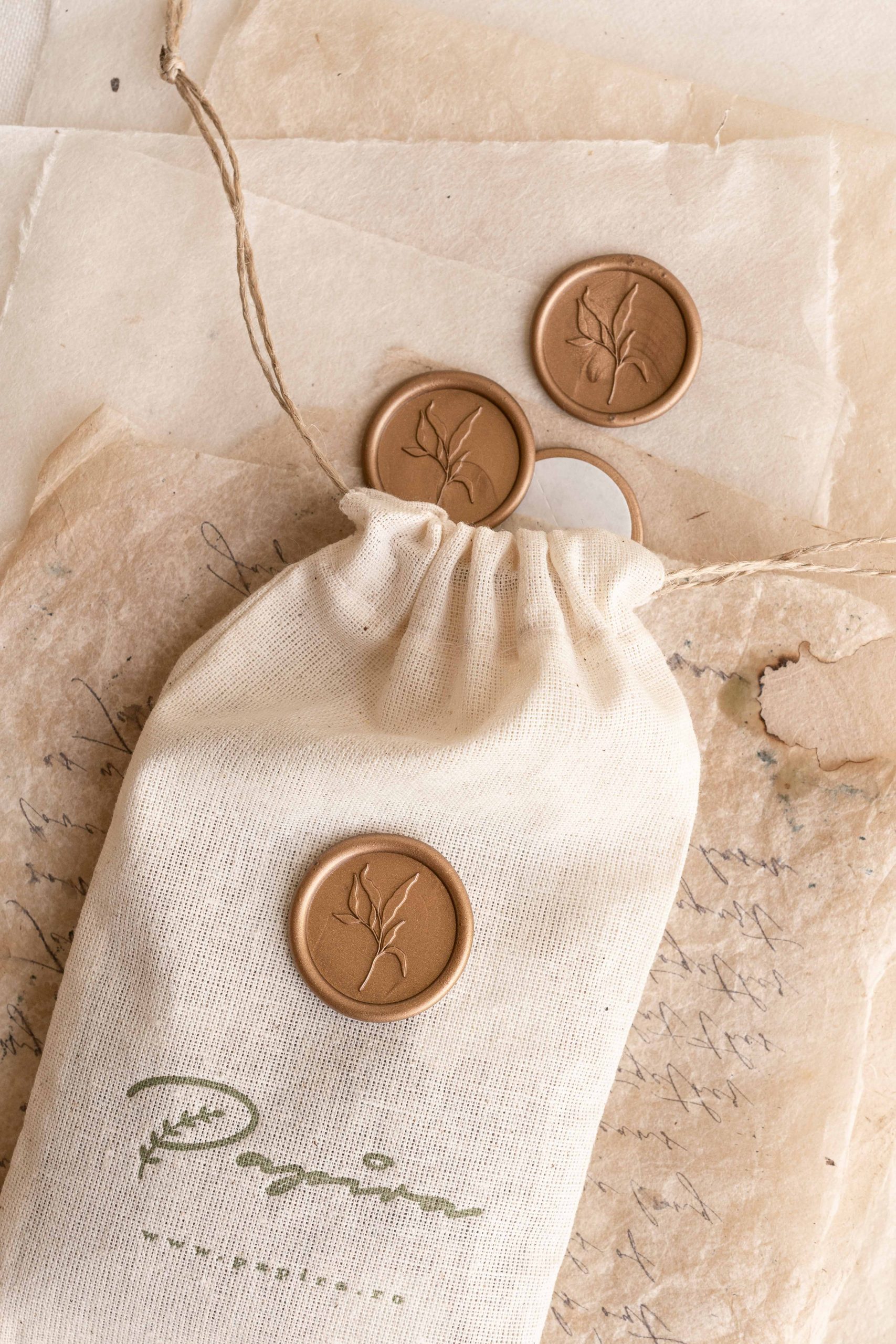 All our self-adhesive wax seals are made entirely by hand, each one completely authentic and unique. Hand stamped in our studio using real sealing wax, which will not break or crack in the mail.  They come packaged in our custom linen branded pouch.