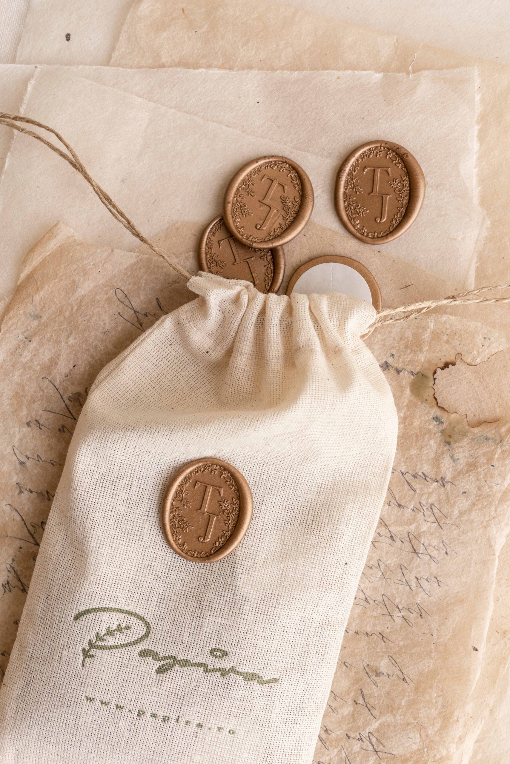 All our self-adhesive wax seals are made entirely by hand, each one completely authentic and unique. Hand stamped in our studio using real sealing wax, which will not break or crack in the mail.  They come packaged in our custom linen branded pouch.