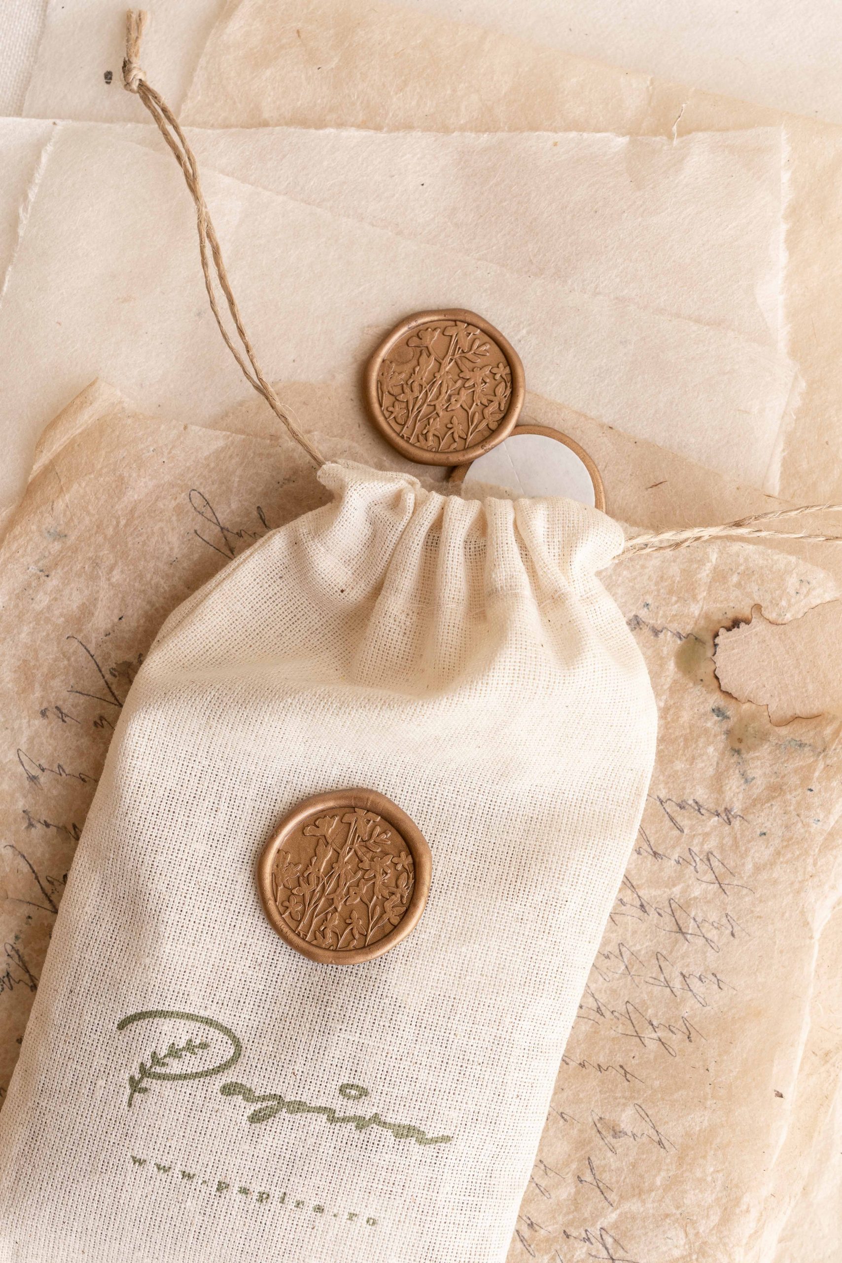 All our self-adhesive wax seals are made entirely by hand, each one completely authentic and unique. Hand stamped in our studio using real sealing wax, which will not break or crack in the mail.  They come packaged in our custom linen branded pouch.