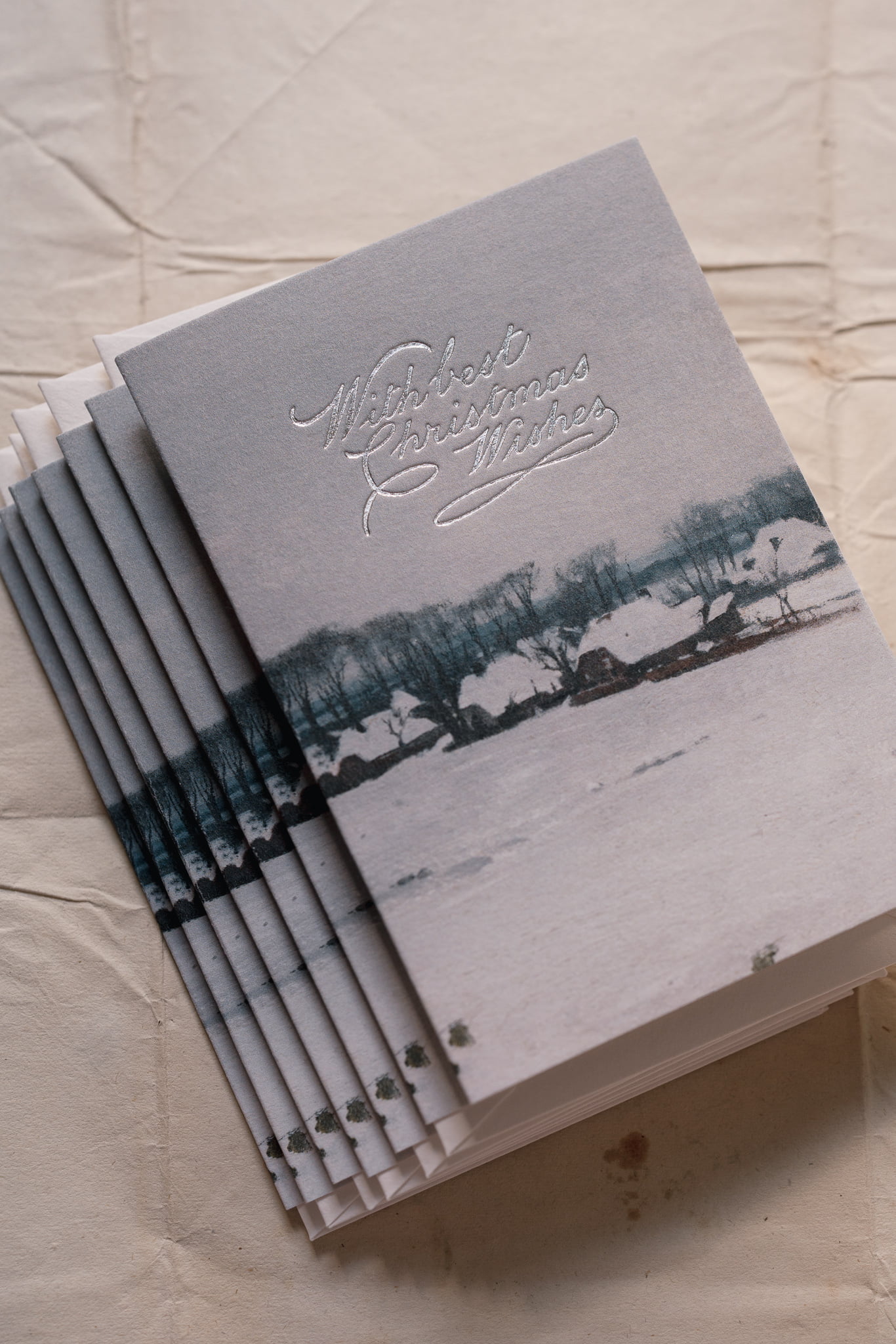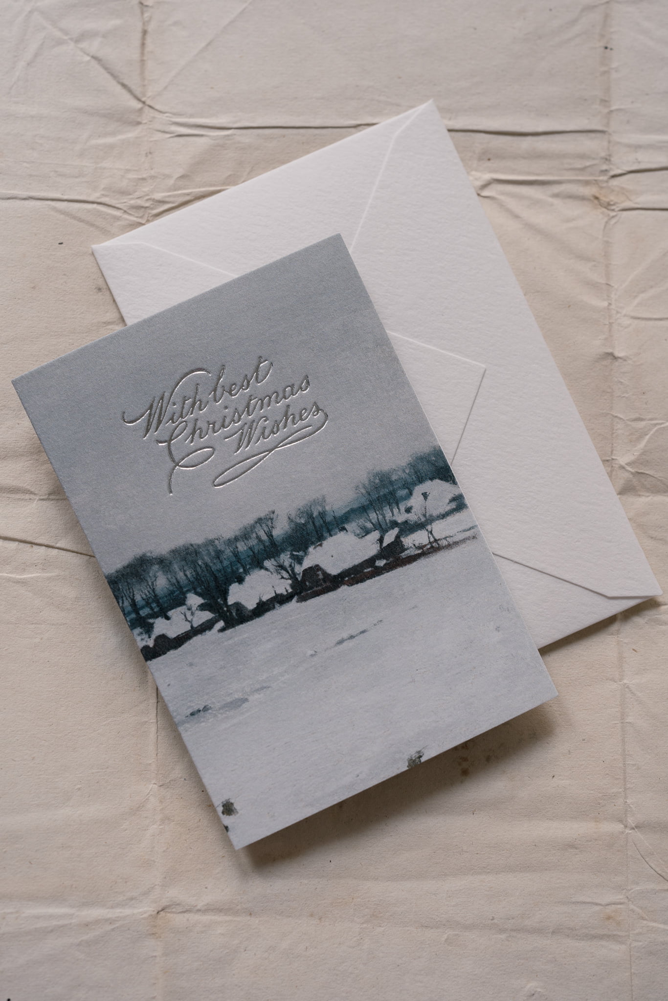 “WITH BEST CHRISTMAS WISHES” is a holiday greeting card, digitally printed with a vintage fine art print and metallic foil press message. Each card is printed in-house, by hand on our antique letterpress machine. The card has a blank inside for a handwritten message.